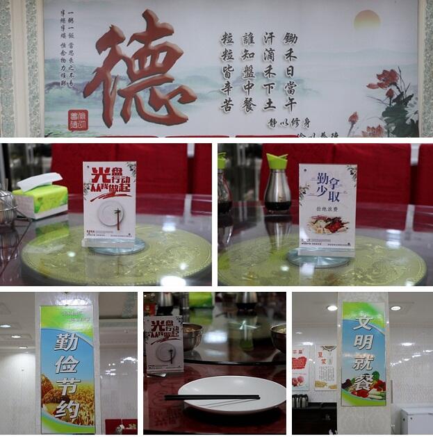 强化宣传效应,扎实开展活动宣传。制作“厉行节约反对铺张浪费”宣传展板10余个,在市局食堂内显著位置悬挂“文明餐桌”宣传语,张贴文明用餐、勤俭节约的名言警句、经典诗文及宣传画,餐桌上,摆放“文明餐桌”“光盘行动”宣传提示牌。向全局干部发起“行动起来,杜绝‘舌尖上的浪费’”的倡议书,积极呼吁干部持续深化“光盘行动”,养成良好的节俭理念。