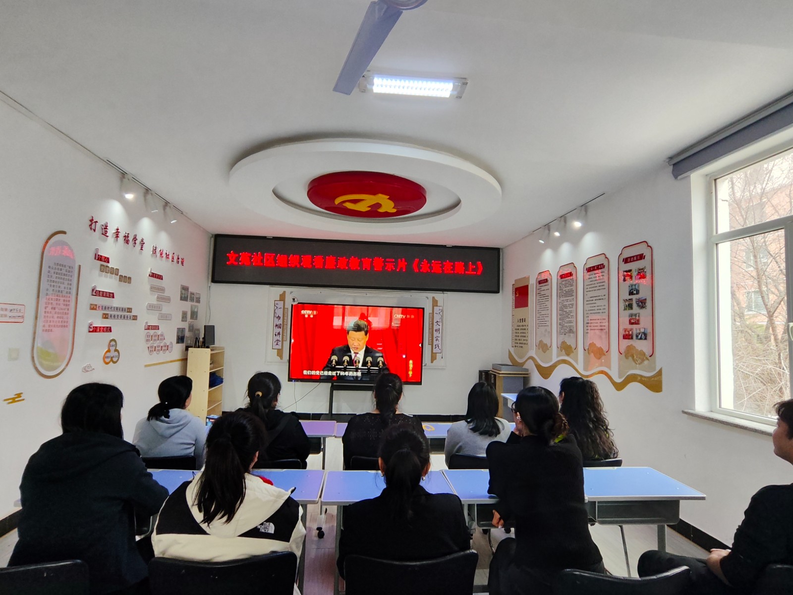 胜利街道文苑社区组织观看廉政教育警示片《永远在路上》